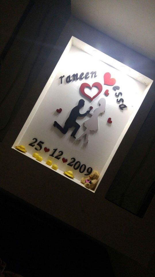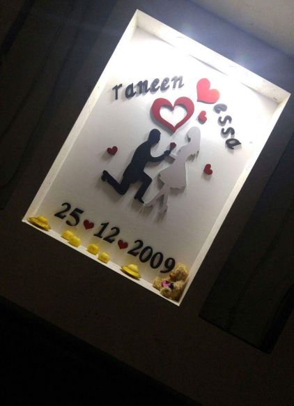 منظر خشبي لعرسان مع اسمين وتاريخ