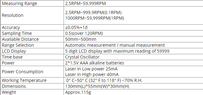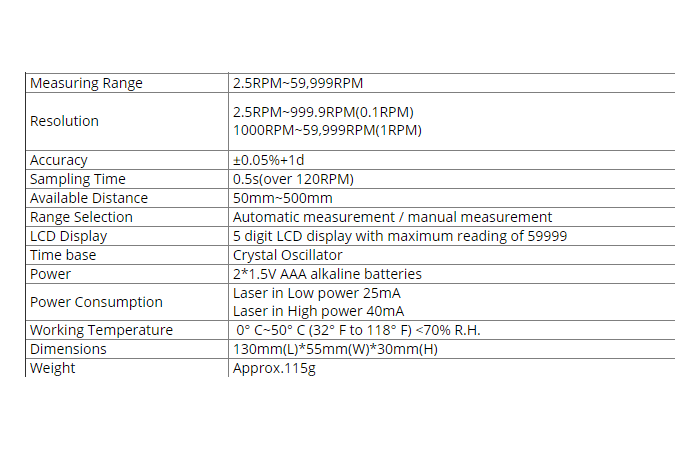 الجهاز يستخدم لقياس سرعة دوران المحركات من 2.5 دورة لغاية 60000 دورة
