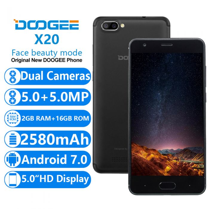 هاتف doogee x20 - 16 جيجابايت - اسود