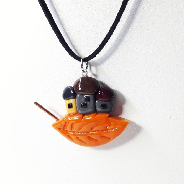 تعليقة وعقد على شكل ورقة شجر وبيوت