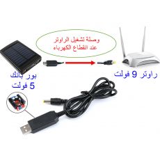 - .المنتج عبارة عن وصلة تحتوي على محول ،يتم توصيلها بين الباور بانك (بنك الطاقة الخاص بالموبايل ) والراوتر ..يعمل على مناسبة التيار الكهربائي الصادر عن الباور بانك الى الراوتر