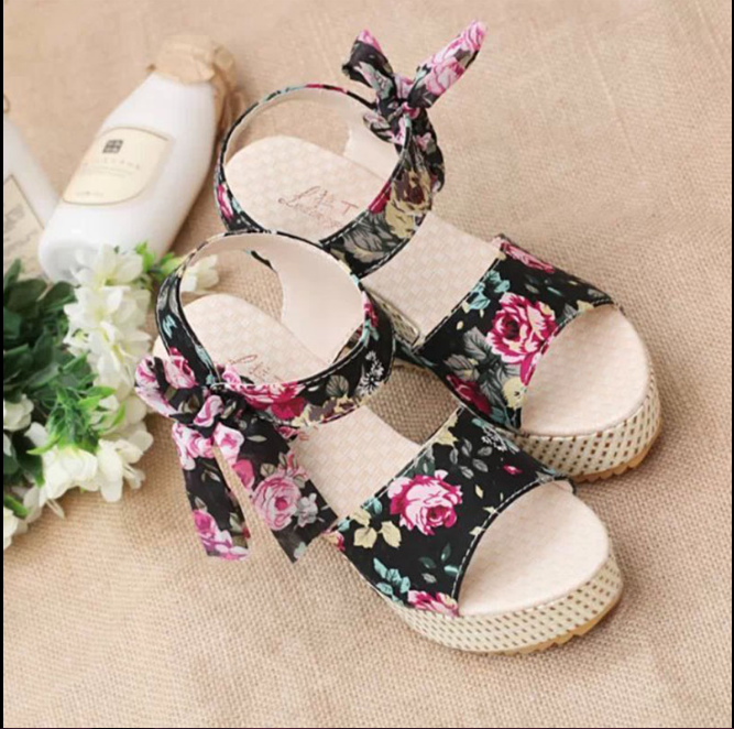 صندل روكي اسود مرسوم بالورود نمرة 38 اسود وبيج