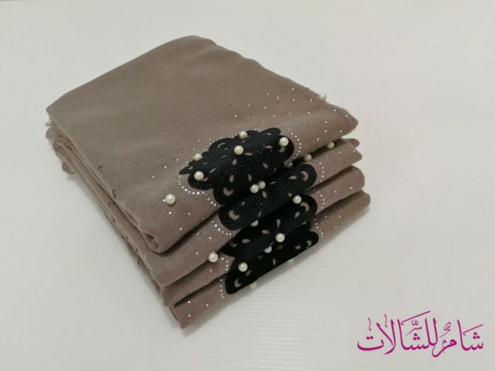 شال تركي مميز بقطع مهمل ولؤلؤ وخرز مع تحفير ليزر مميز
