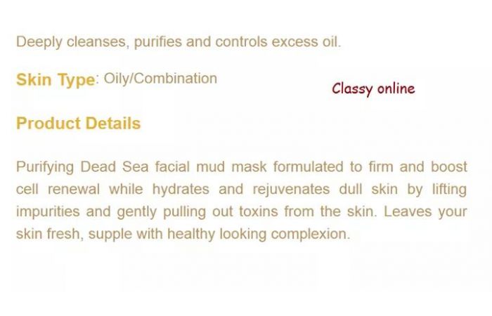 قناع الوجه من طينة البحر الميت مكونات طبيعية لتجديد الخلايا وترطيب وتغذية البشرة وازالة الشوائب وتخفيف التجاعيد و يترك بشرتك نضرة صحية المظهر