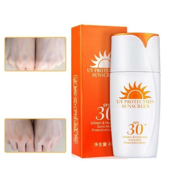 محلول واقي من الشمس, يستخدم للوقاية من اشعة الشمس الحارة وتبيض البشره يوضع قبل الخروج من المنزل بنصف ساعة