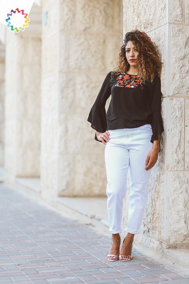 بلوزة سوداء بورود حمراء كم طويل من ماركة كاليرز