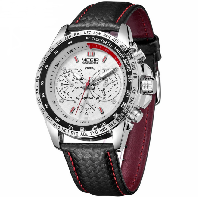 Specifications:Case Diameter: 4.3 cmCase Thickness: 1.2cmBand Wideth: 2.1cmBand Length: 25cmBand Material:Leather Components Included:1 x MEGIR 1010 Watch