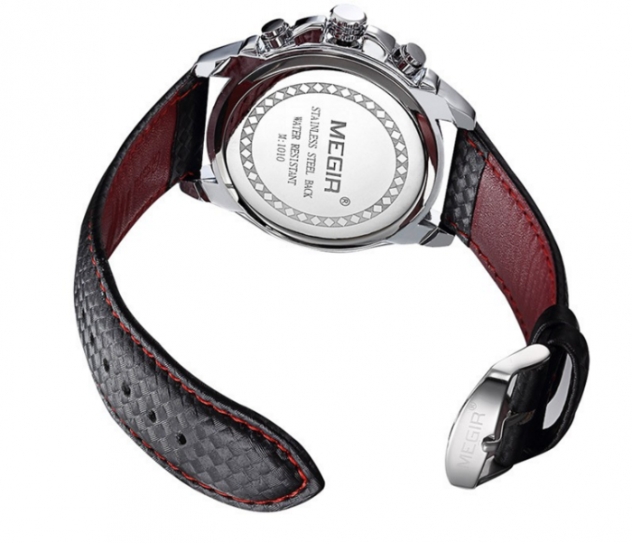 ميجير ساعة عملية كاجوال للرجال انالوج بعقارب جلد - خلفية بيضاء- 1010